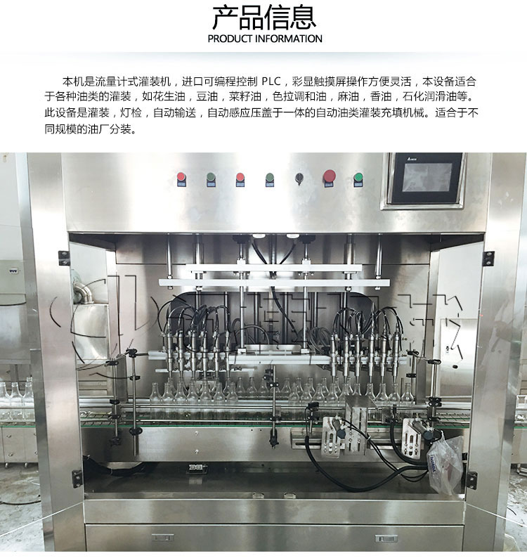 該系列灌裝機(jī)采用流量計(jì)式計(jì)量灌裝原理,多項(xiàng)認(rèn)證,適用于各種規(guī)格(1-5升)的南瓜籽油、榛子油、牡丹籽油、芝麻油、核桃油、山茶油、亞麻籽油、棉籽油、橄欖油、大豆油、玉米油、菜籽油等食用油灌裝。設(shè)備采用高精的旋轉(zhuǎn)編碼器計(jì)量,保證了1%o的灌裝精度,在保證灌裝精度的同時(shí),提高了20%-35%的灌裝速度,操作簡(jiǎn)單,維護(hù)方便,節(jié)省人工成本,生產(chǎn)效率更高。