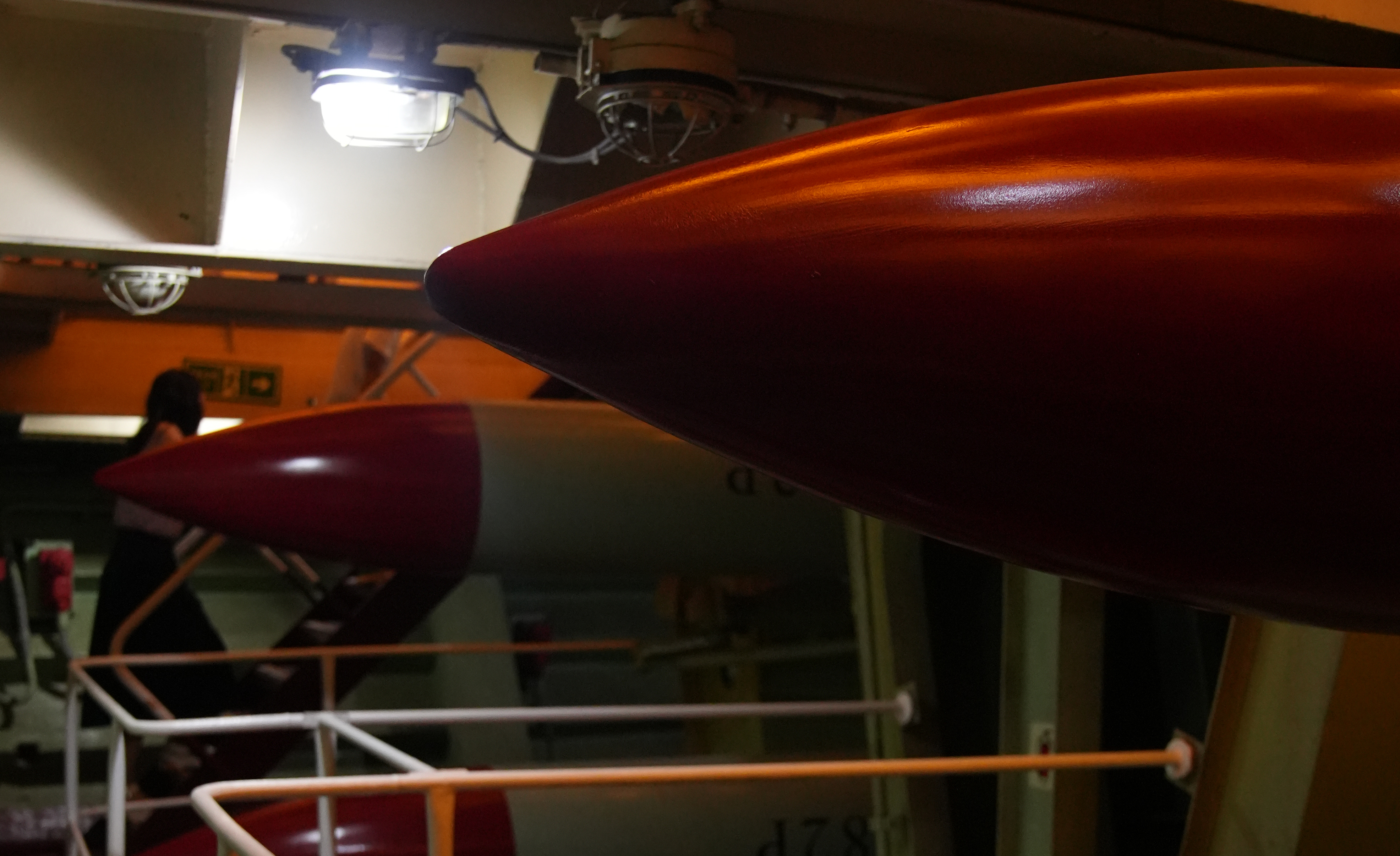 基輔航母的反潛導彈庫,位于三甲艦首部分。這里曾裝載著具備自導功能的反潛導彈,主要用于遠距離反潛,裝填自動化。庫內(nèi)還存有全艦唯一實彈供游客近距離參觀,感受航母反潛作戰(zhàn)的強大實力。